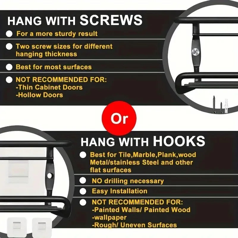 EASY TO INSTALL SPICE RACK: The kitchen organiser set is very easy to install; the included hanging hardware and two different sized screws allow for flexible hanging and secure fixing of the spice rack on the wall.